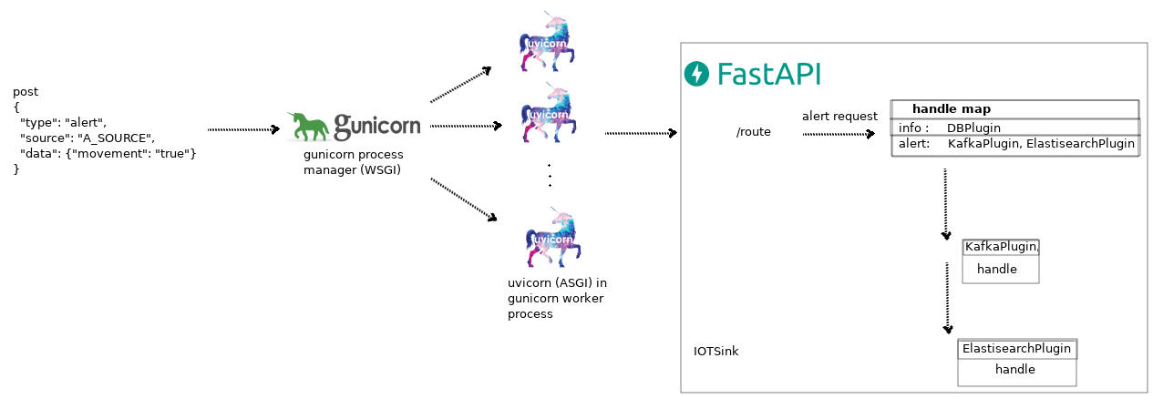 server app that acts as a message sink / a fastapi app exposed on gunicorn running uvicorn workers source code on github